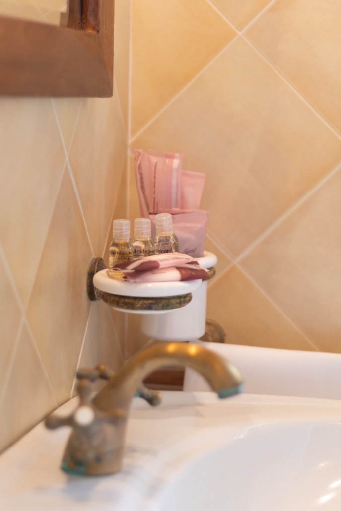 • Bagno privato con telefono doccia ed accessori da bagno (shampoo, dental kit, set da barba, sapone, cuffia doccia ed asciugacapelli)